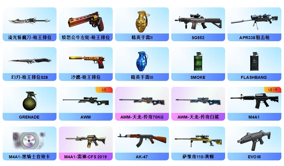 200V幻神8皮+幻神音效卡王者星神王者风神玄武G36-幻影白虎3皮+音效卡QBZ3皮+音效卡雷神(虎牙)12皮肤毁灭8皮全套冠军3冠军之刃7音卡